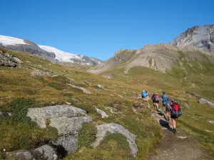 Ce séjour nous emmène au cœur des paysages grandioses de la Vanoise, avec un itinéraire au départ de Pralognan-la-Vanoise, sur le Tour des Glaciers de la Vanoise. endant cinq jours, nous ferons le tour de la chaîne du parc, en passant par un col à près de 3 000 mètres, des balcons et des vallées sauvages, pour une immersion totale en montagne.