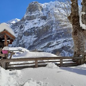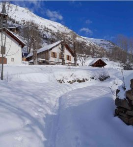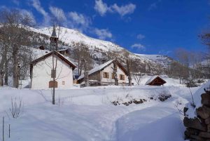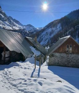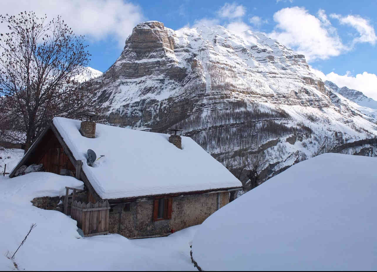 Depuis notre point de rdv, nous grimperons rapidement au refuge niché à 1800m d’altitude. Dans un ancien village maintenant hameau, le refuge se trouve dans l'ancienne école du village qui accueillait les élèves jusqu'en 1944. Une fois installés et sans obligation, nous irons soit proche d’un lac gelé soit dans une autre vallée au sud de notre hébergement. Un court passage pentu sera nécessaire pour atteindre ces points.